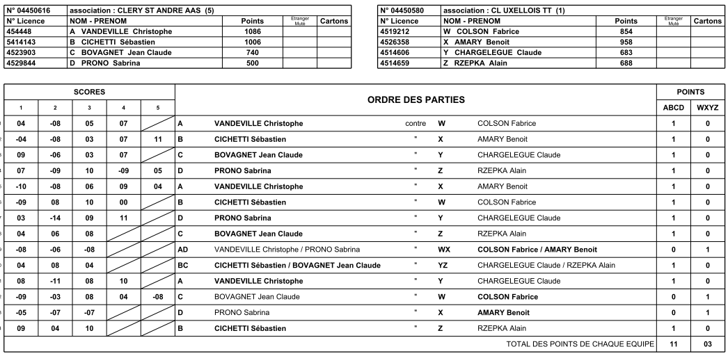 Départementale 4 : CLERY 5 - UXELLOIS 1 : 11/3