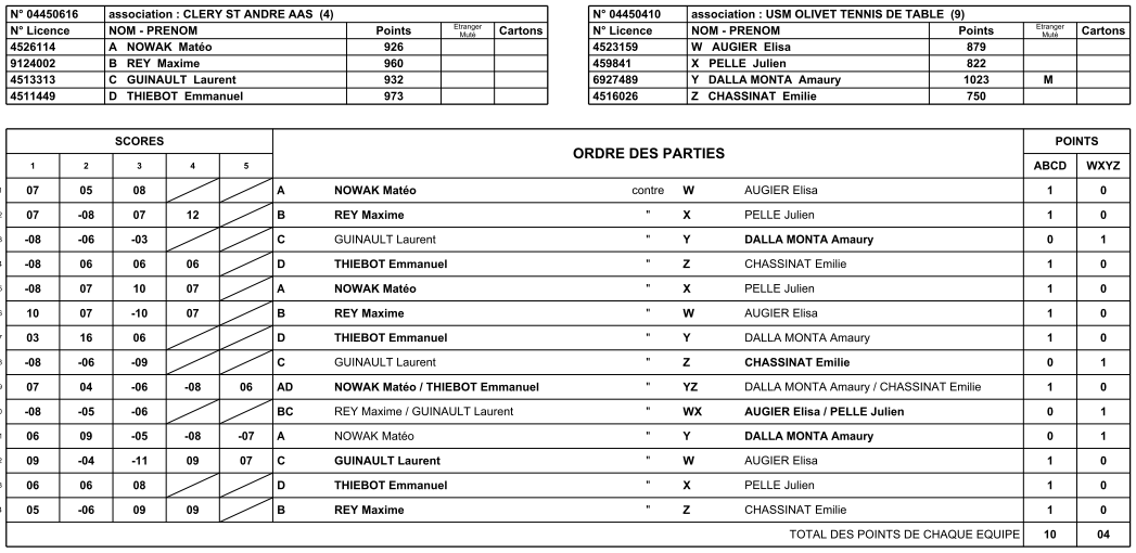 Cléry : T. Périnet (544) - A. Tellier (512) - G. Périnet (500) - JP. Xiong (500)