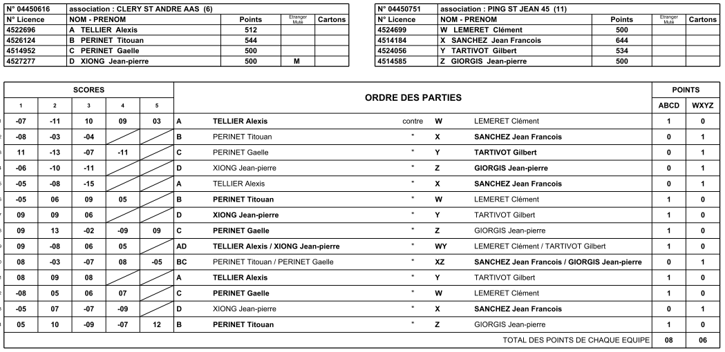Départementale 6 : CLERY 6 - PING ST JEAN 11 : 8/6